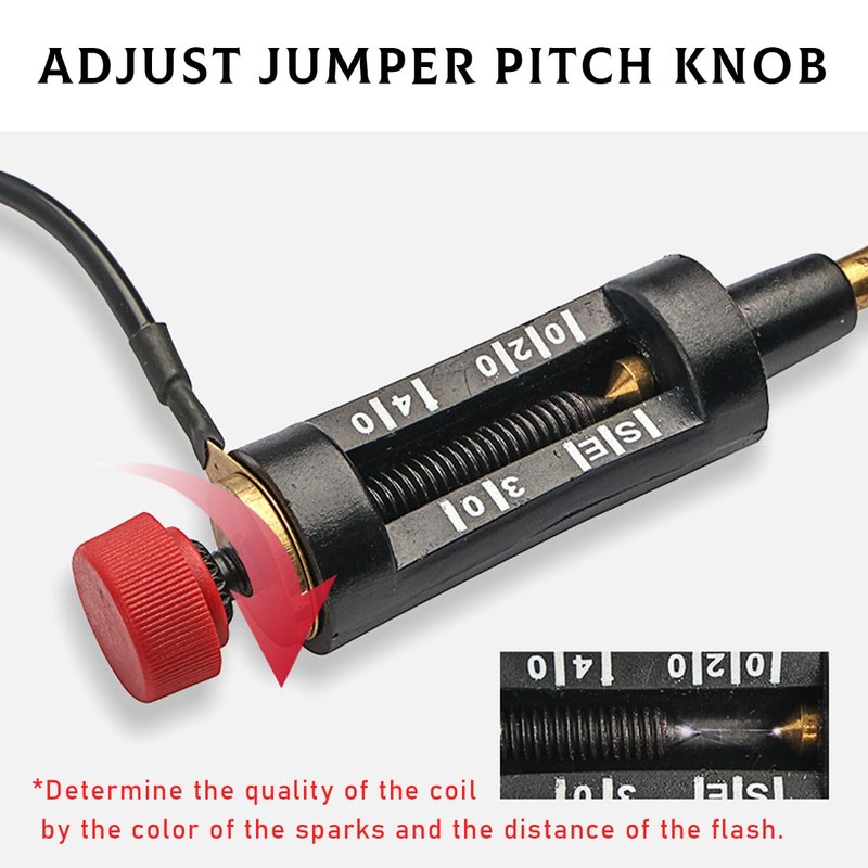 - 【Adjustable Spacing】: The red button is used to adjust the spark spacing. The specific parameters of the ignition system vary from model to model, and you can adjust the spacing of the tester to carry out tests according to the actual conditions of different models.