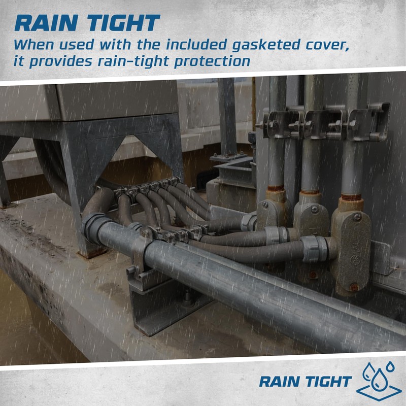 - Raintight Protection: These conduit bodies compatible with gasketed covers, provide Raintight protection, making it suitable for outdoor and wet location installations.