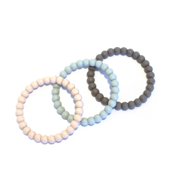 - 3 teether bracelets in classic bubble shape - easy for little hands to grip - can also be used as a bracelet