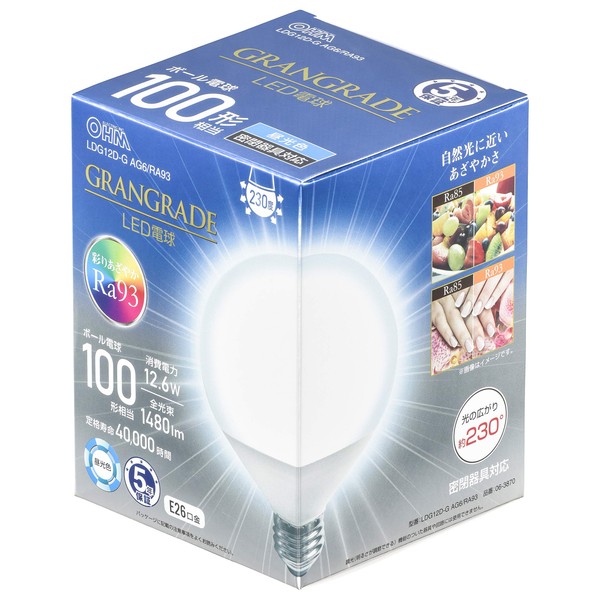 Ohm Electric LDG12D-G AG6/RA93 06-3870 OHM LED Bulb, Ball Bulb Shape, E26 Equivalent, 100 Shape, Daylight