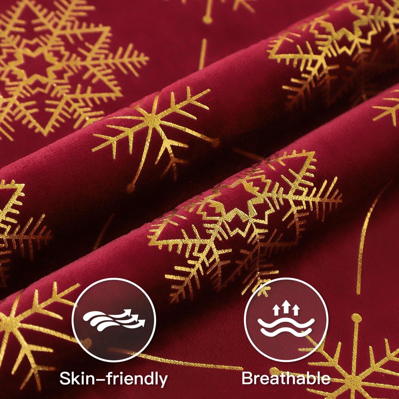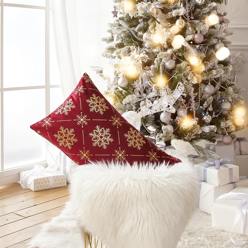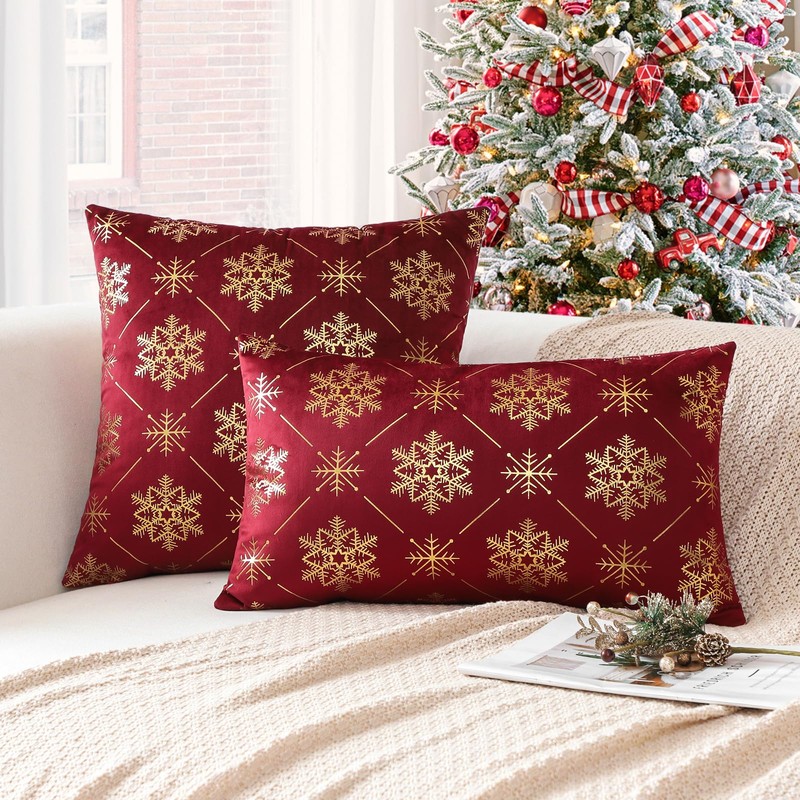 Ohok Christmas Gold Hot Embossing Velvet Cushion Cover, Set of 2, Decorative Sofa Cushion, Couch Cushion, Decorative Cushion Covers for Sofa, Living Room, Bedroom (Burgundy, Snowflake A, 30 x 50 cm)
