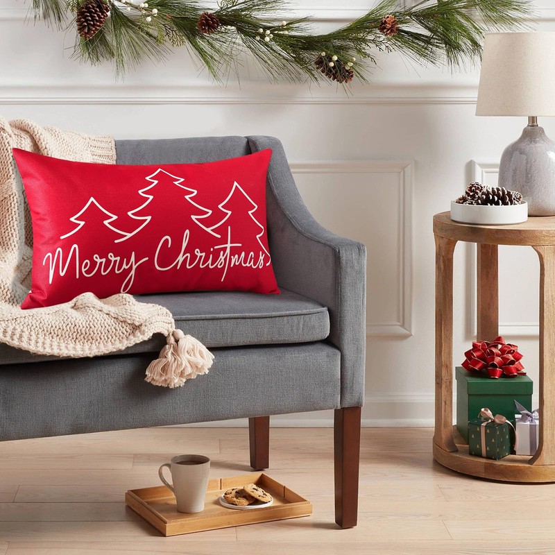 Ohok Decorative Christmas Cushion Cover, 30 x 50 cm, Polyester Linen Decorative Cushion Covers, Merry Christmas Cushion Covers, Decorative Cushion Cover Set for Bedroom, Living Room, Sofa (Red)
