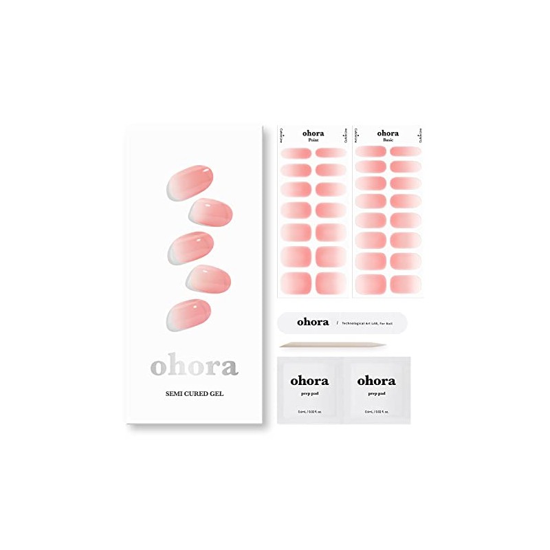 ohora Semi Cured Gel Nail Strips (N Peach Latte) - Works with Any UV Nail Lamps, Salon-Quality, Long Lasting, Easy to Apply & Remove - Includes 2 Prep Pads, Nail File & Wooden Stick