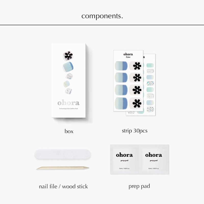 ohora Semi Cured Gel Nail Strips (P Flowery Ocean) - Works with Any Nail Lamps, Salon-Quality, Long Lasting, Easy to Apply & Remove - Includes 2 Prep Pads, Nail File & Wooden Stick