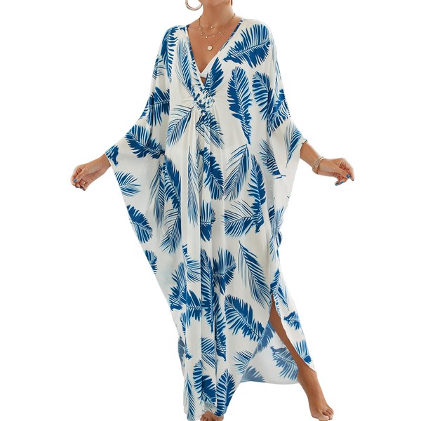 - Kaftan Dress Design: Flattering plus size beach coverup with deep V-Neck batwing sleeves - lightweight mumu dresses that slims your silhouette.