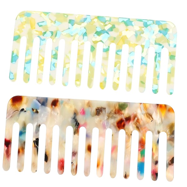 OHPHCALL 2pcs Wide Tooth Hair Combs Double Sided Hair Comb Static Detangler Brush Styling Tools