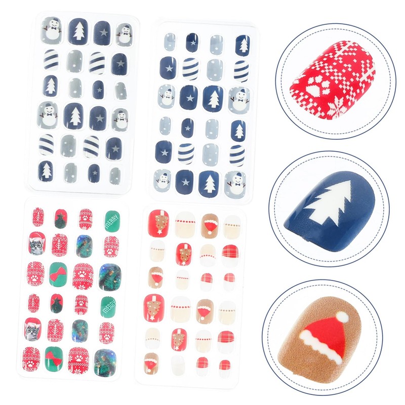 • Fake nails stickers-- you will get 96 pieces christmas press on false nails in 4 individually package box, they have bright colors and various sizes, different styles will meet your multiple DIY needs.
