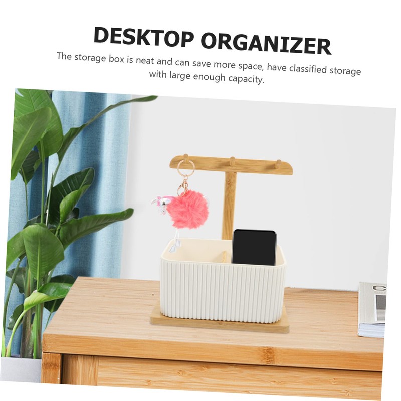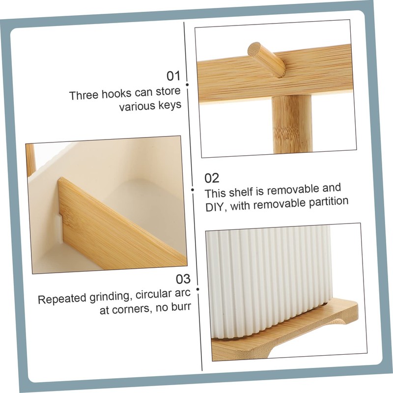 OHPHCALL Space-saving Bamboo Storage Box for Office Desk Bedside Removable Dividers Hooks for Keys