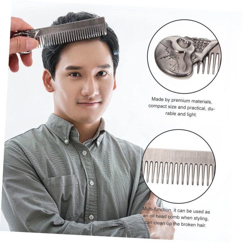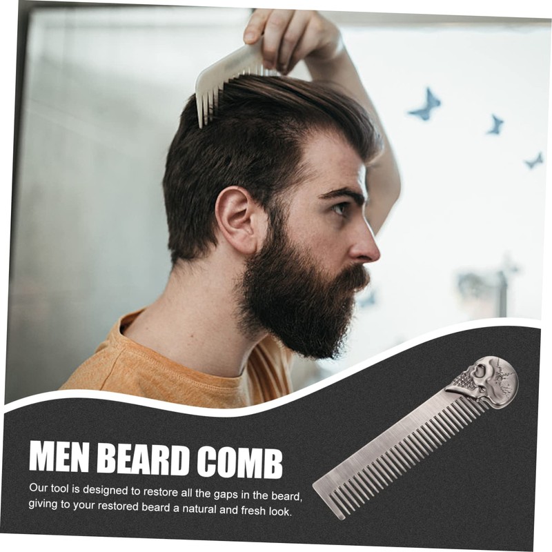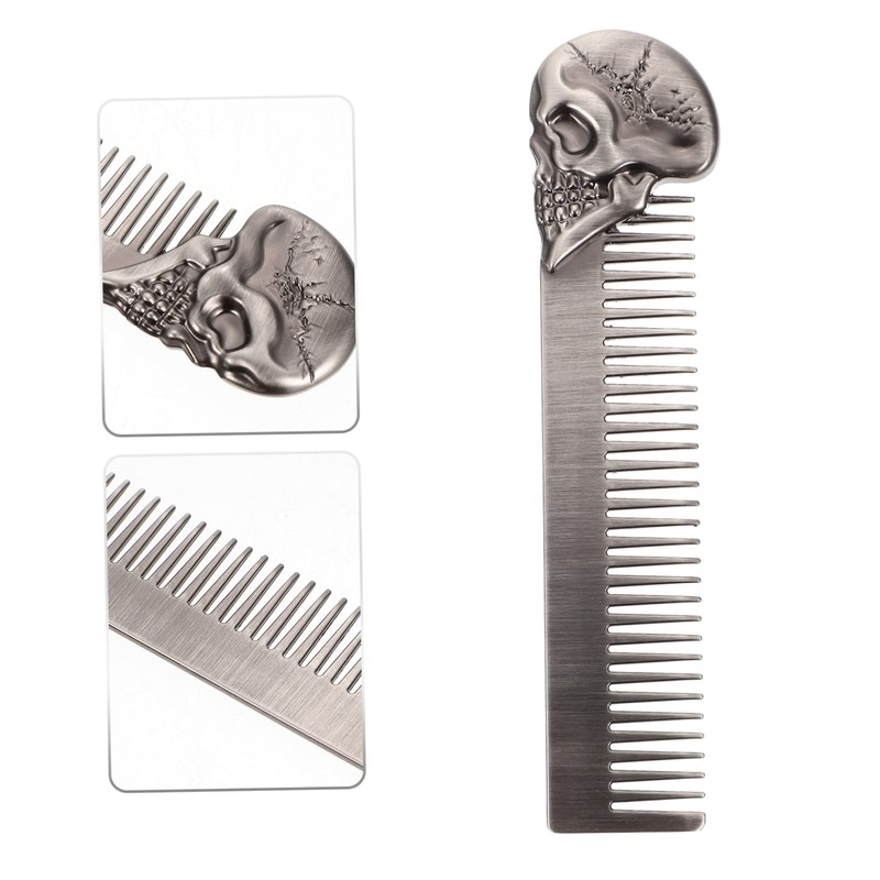 OHPHCALL Zinc Alloy Skull Comb Beard Styling Tool Men's Hairdressing Accessory Portable