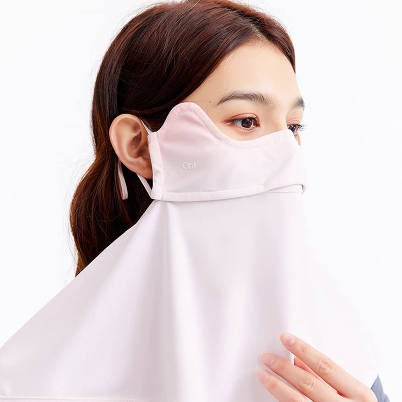 OHRAIN Sun Protection Neck Gaiter Face Cover UPF 50+ UV Balaclava Cloth Bandanas with Ear Loops SLF4M032 Pink&White