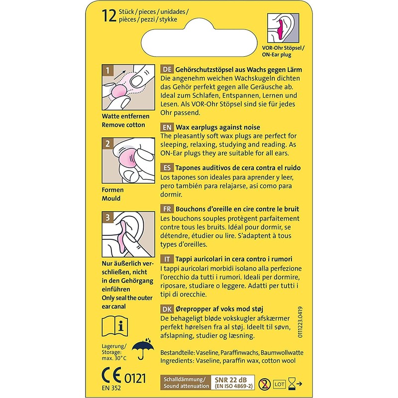 Ohropax Classic Wax Ear Plugs - Moldable Wax Ear Plugs for Sleep, Rest, Noise Reduction - 1 Pack (12 Ear Plugs)