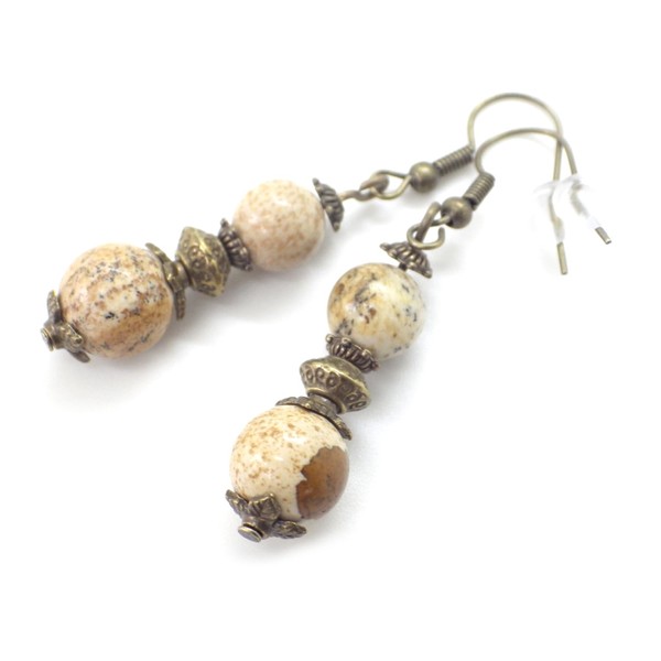 Ohrringe aus braunen Jaspisperlen und antiken Bronzeperlen