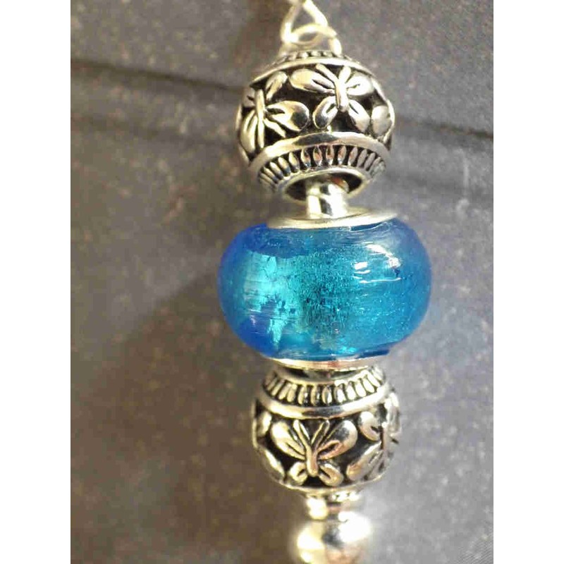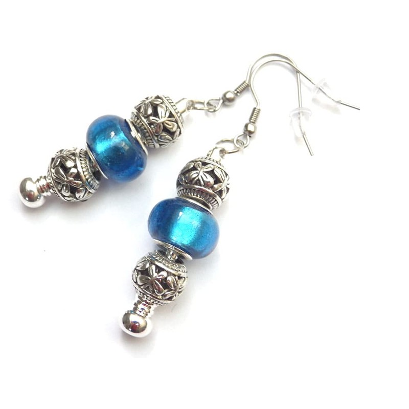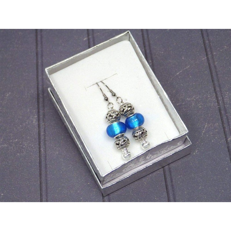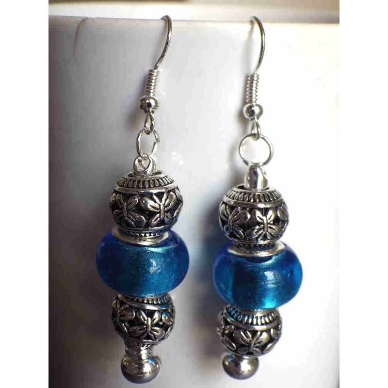 Ohrringe Charms Thurcolas Modell Manhattan mit Metallperlen und blauem Glas.