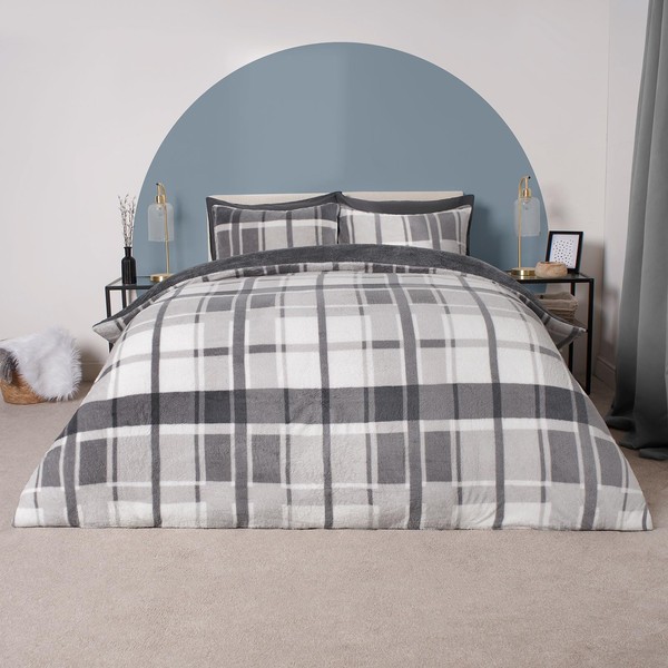 - Bedding Double Bed Set: Charcoal grey teddy fleece check double duvet cover with matching check pillowcases. Double bedding set adds a luxurious winter and seasonal feel to any home and bedroom decor design, perfect for autumnal bedding changes.