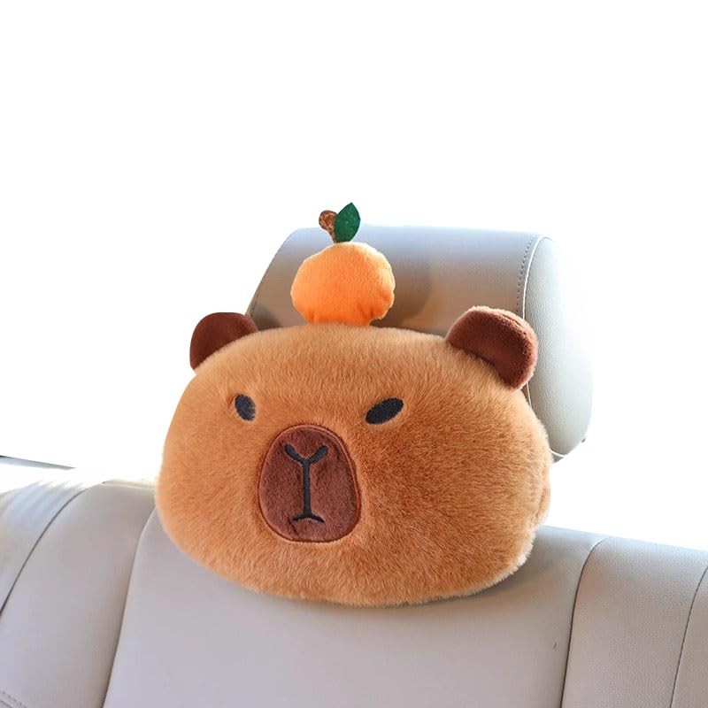 Ohsail 2PCS Seat Belt Cover Cute Plush Capybara Safety Seatbelt Shoulder Cover Car Seats Accessories (1*headrest)