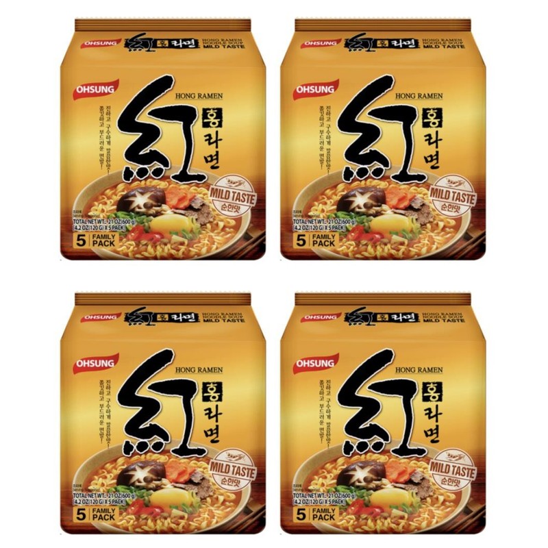 OHSUNG 4 PACK Ohsung Hong Ramen Korean Style INSTANT NOODLE SOUP, MILD Flavor 5 Pack EA