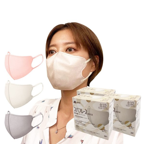 OHTE 30枚3Dマスク 立体マスク 不織布 血色マスク 不織布マスク カラー 立体 くちばし マスク 小顔 バイカラー マスク 口元空間 カラー 普通 小さめ 子供用 女性用 夏用マスク 4層構造 使い捨て 耳が痛くならない おしゃれ (ミルキーベージュ, 30枚 x 3箱)