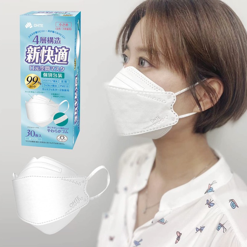 OHTE 新快適 KF94 口元空間マスク 立体マスク 3Dマスク 小さめ 30枚入 全国マスク工業会会員 カケンテスト認証 ホワイト (30枚x1箱)