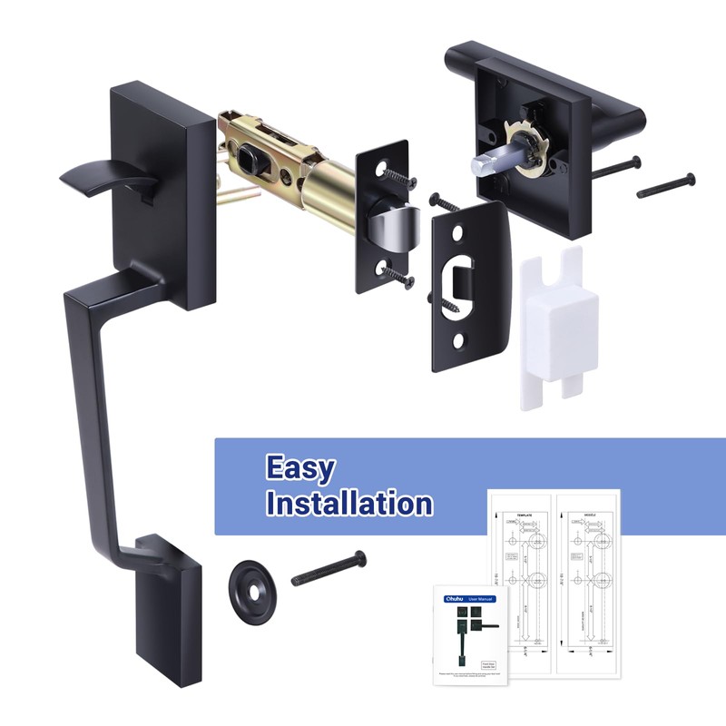 - EASY INSTALLATION & REVERSIBLE: The package includes all the necessary hardware components you need and all you need to install this front door handle is a single screwdriver! For your convenience, we have included a detailed user manual and drill template to guide you through the installation process. Left or right, it doesn't matter! This fully reversible front door lock set is made to be fully compatible with both left or right-handed doors for a perfect fit on either.
