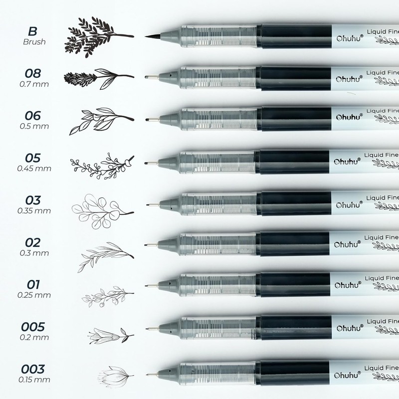 - 💗【9 Different Sizes】9 different sizes from 0.15mm to 0.7mm. (Thickness:003-0.15mm/005-0.2mm/01-0.25mm/02-0.3mm/03-0.35mm/05-0.45mm/06-0.5mm/08-0.7mm/brush type) Great for line and delicate drawing, or any artwork