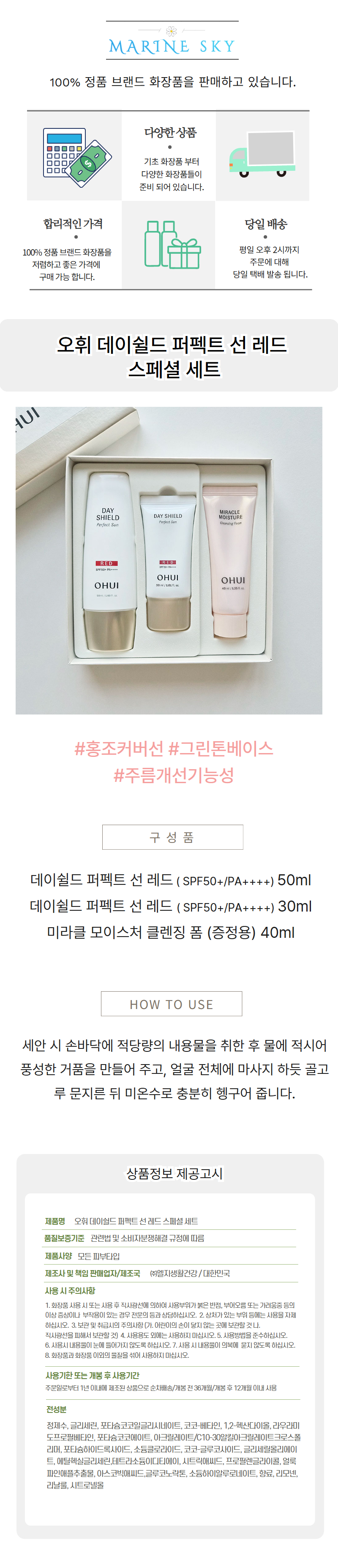 오휘 데이쉴드 퍼펙트 선 레드 80ml (본품 50ml + 증정용 30ml 추가 증정) 스페셜 세트
