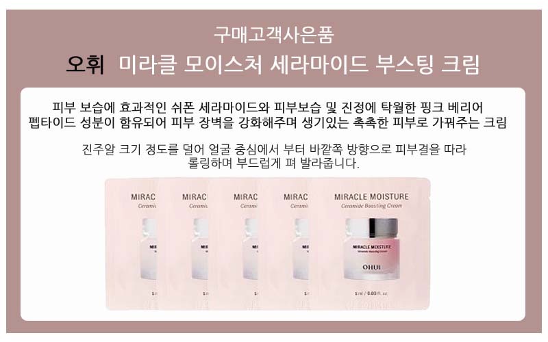OHUI Miracle Moisture Ceramide Boosting Cream 120 Sheets when purchasing a Hanskin refill / 한스킨리필 구매시 오휘 미라클 모이스처 세라마이드 부스팅 크림 120매