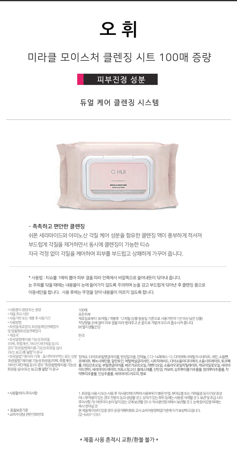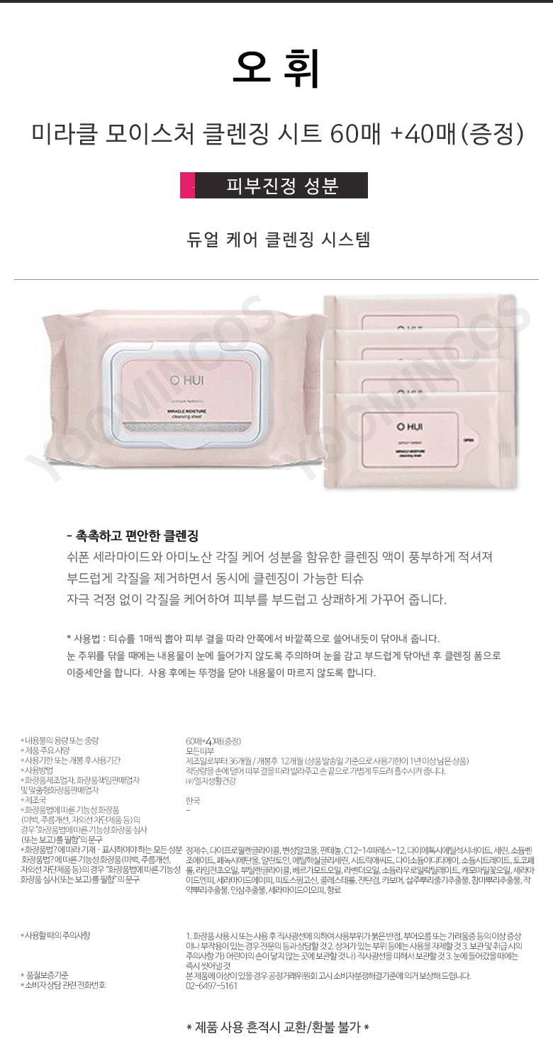 오휘 미라클 모이스처 클렌징 시트 60매100매세트