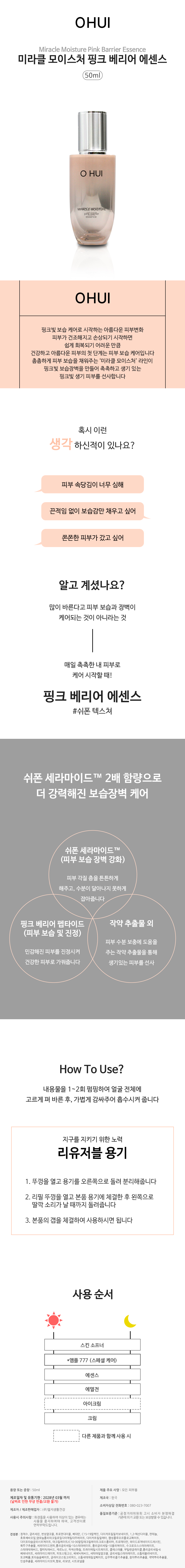 오휘 미라클 모이스처 핑크 베리어 에센스 50ml