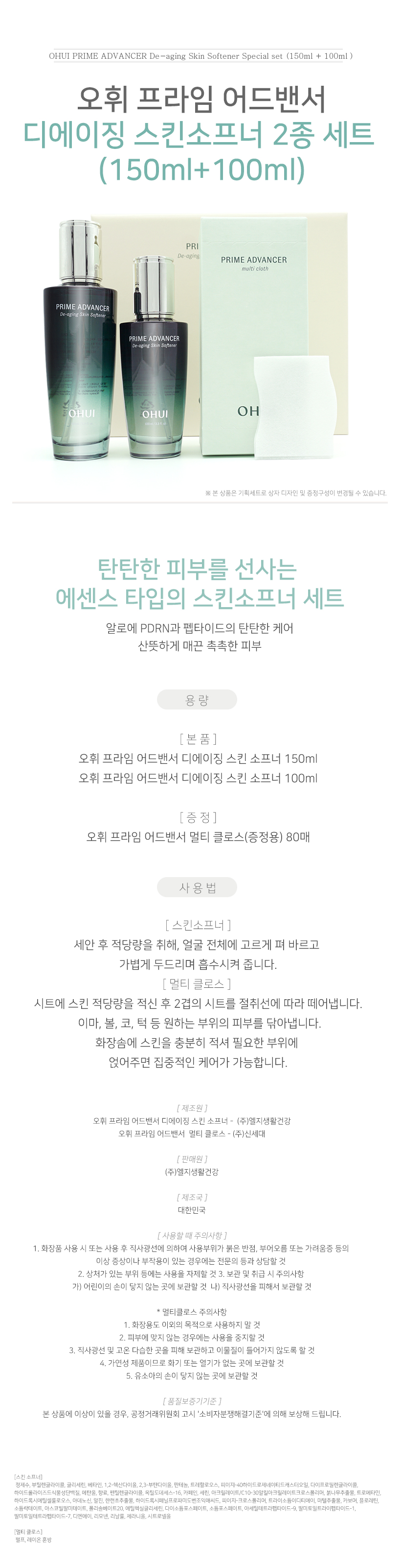 오휘 프라임 어드밴서 디에이징 스킨 소프너 2종 세트 (스킨150ml+스킨100ml) Y