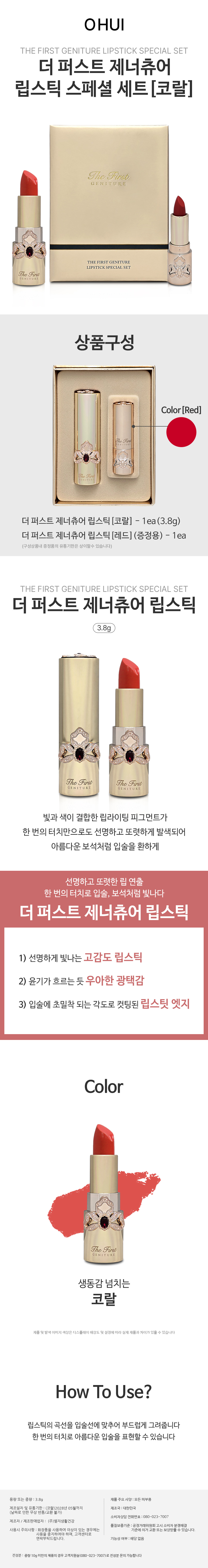 오휘 더 퍼스트 제너츄어 립스틱 스페셜 세트 - 코랄