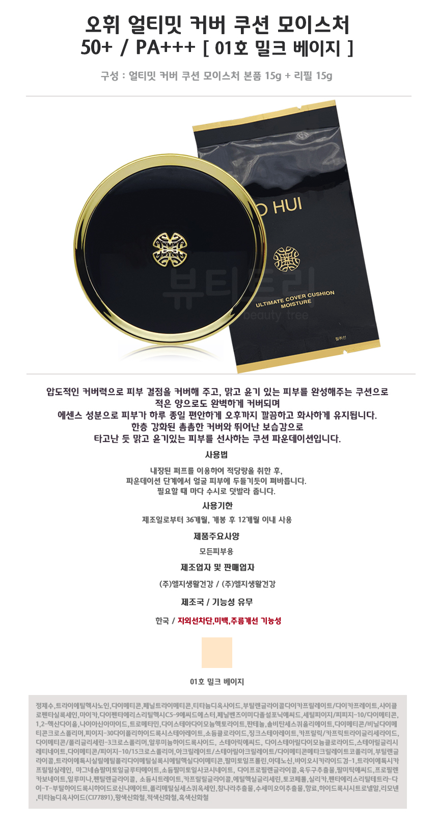 OHUI Ultimate Cover Cushion Moisture Main Product + Refill 01 Milk Beige / 오휘 얼티밋 커버 쿠션 모이스처 본품+리필 01 밀크베이지