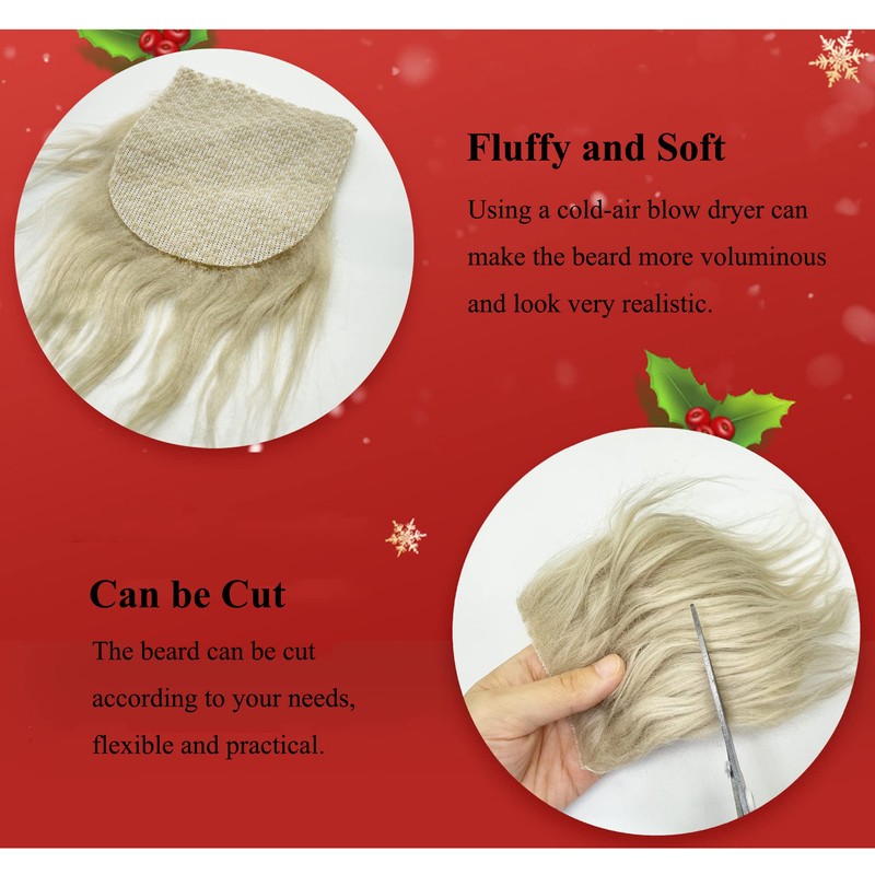 - High-quality material: The Christmas elf beard is made of synthetic hair, with exquisite workmanship, fluffy and soft to the touch, odourless and does not fade.