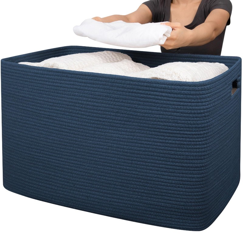 OIAHOMY 118L XXXLarge Cotton Rope Storage Basket, Oversized Blanket Basket, Used for Organizing Dirty Clothes in Living Room, Bedroom, Nursery, Dog Toy Storage Bins, 25" x 17" x 16",Blue