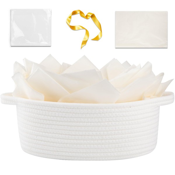 OIAHOMY OIAHOMY Gift Basket with Handle, Small Woven Basket with Gift Bag,Ribbon and Wrap Tissue Paper,Nursery Bins Empty to Fill with Small Items, Baby,Pet Toy Organizer - White