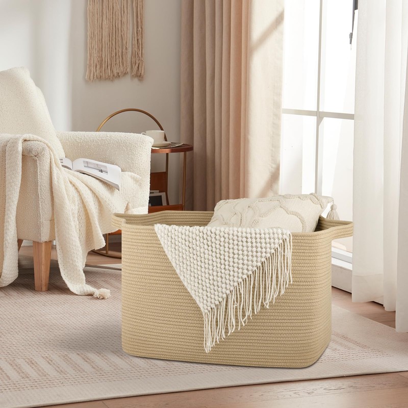 Ropes baskets are a great way to maximize living room storage space while holding 6-8 blankets within them