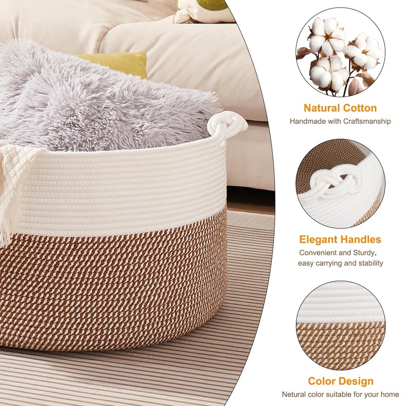 - Multifunctional Use Storage Basket: The big rope basket perfect for bedroom, living room, child's room, bathroom and laundry room. Helps you organize bath towels, extra bedding, pillows and other things