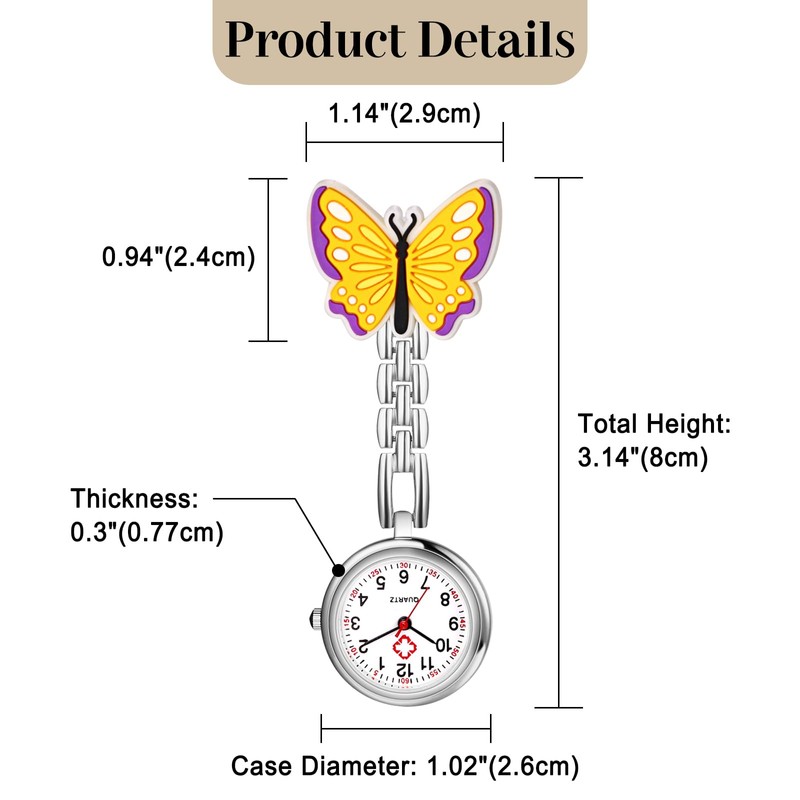 - 【Nurse Watch Butterfly Brooch】As we all know, butterflies symbolize freedom, hope and rebirth. This vivid and colorful butterfly pattern brooch pocket watch adds color to your life. Decorated with beautiful blue and pink butterfly decorations, adding a stylish touch to your medical uniform. Brooch-style pin attaches securely to uniforms, pockets or lapels.