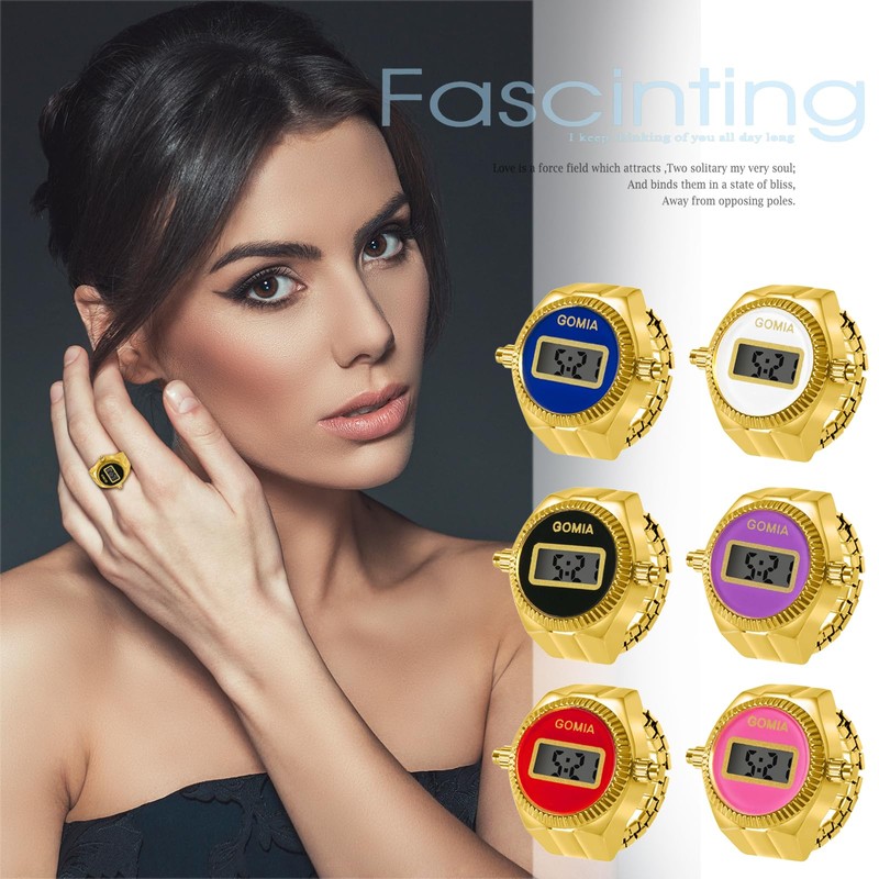 OIDEA Ring Watch Ring for Men Women: Digital Finger Watch Gold Silver Elastic Finger Band with Digital Alloy Ring Watch Ring Gift for Friend Family, Gold-Blue, Sports