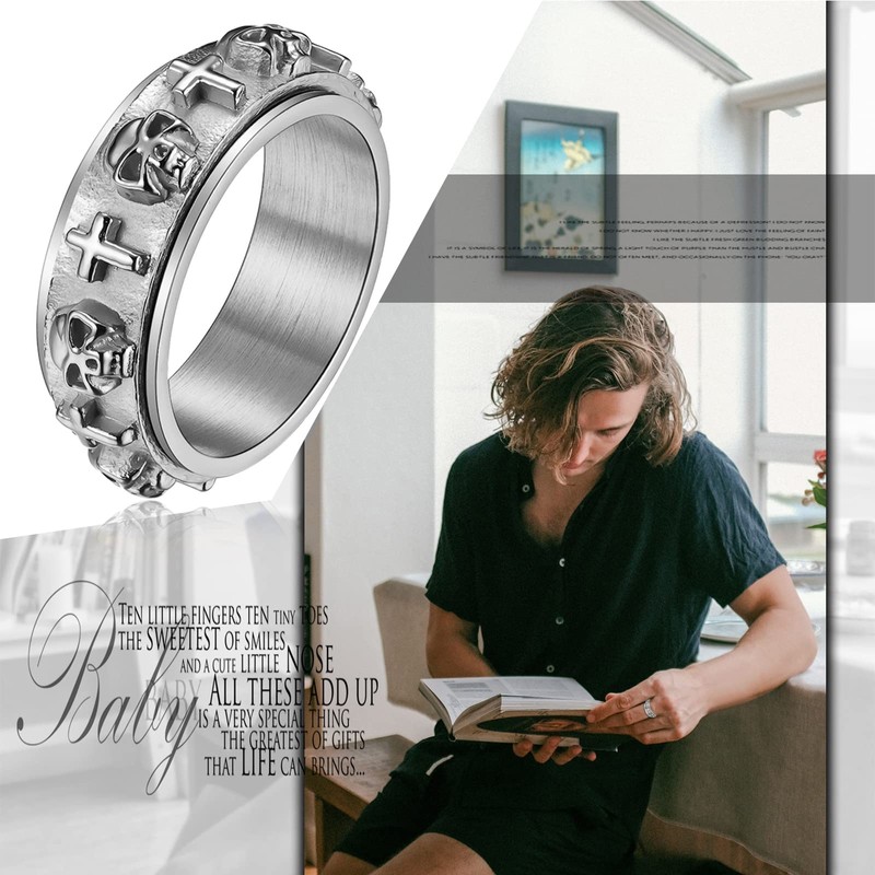 OIDEA Spinner Ring with Skull Stylish, Colour Does Not Change, Does Not Rust, Black Silbler