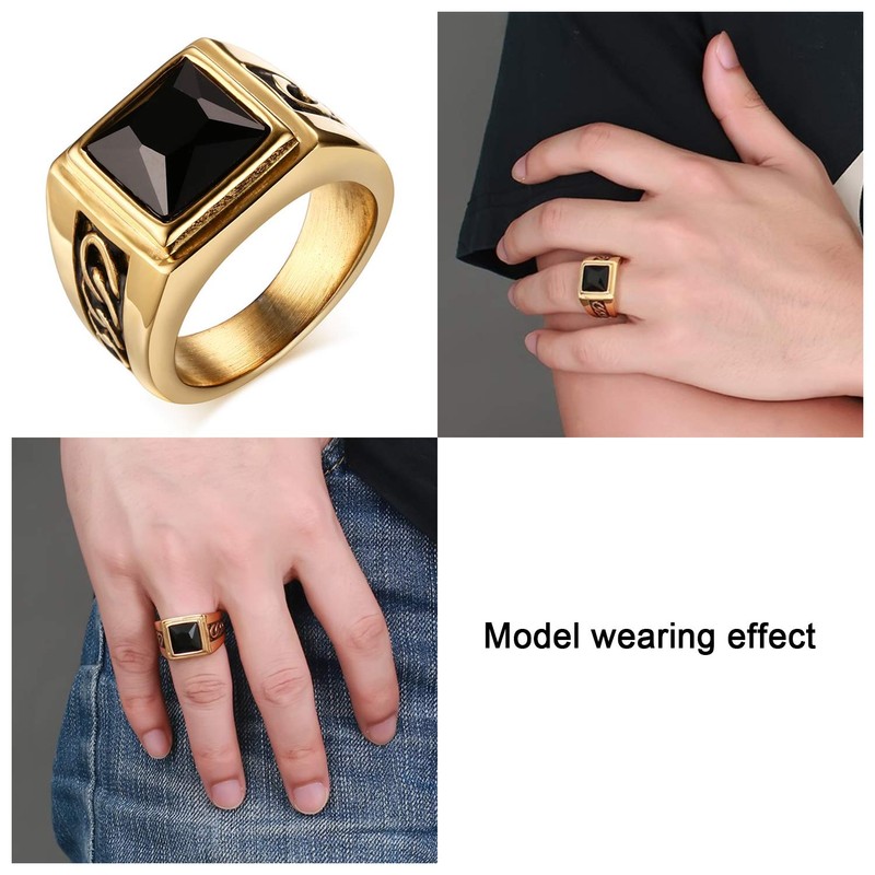 OIDEA Stainless Steel Rings Gold Black for Men Women Classic Retro Charm Agate Stone Rings Men's Ring Stainless Steel Ring Band Ring 57 (18.1) - 67 (21.3), Stainless Steel
