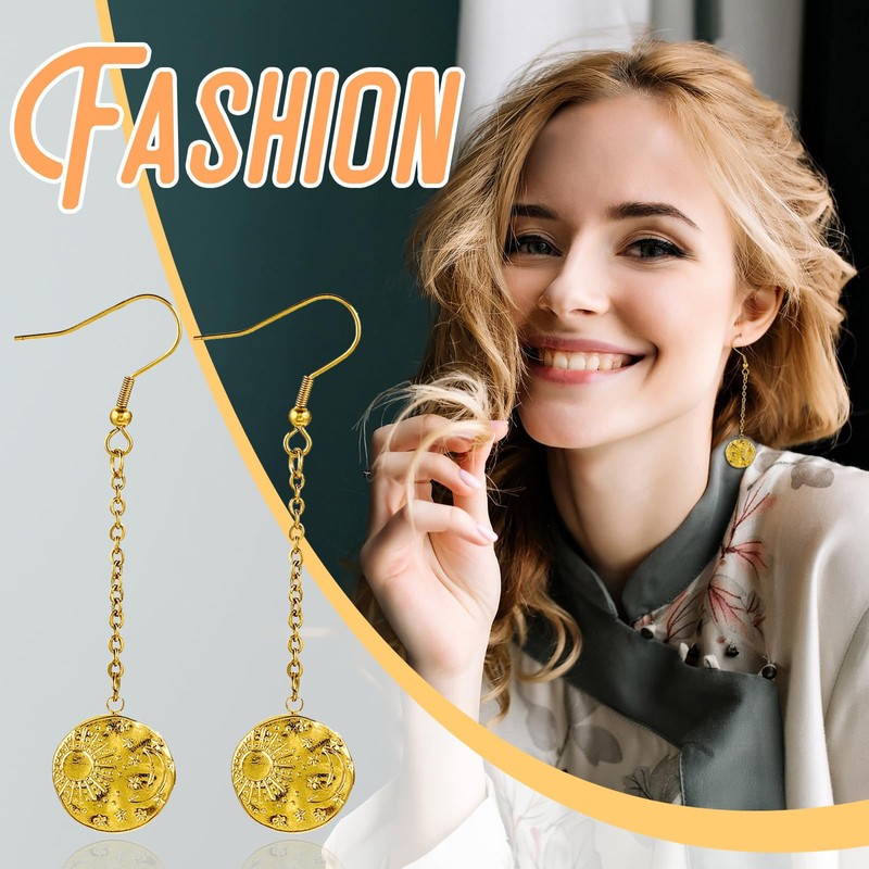 - 【Hypoallergenic Stainless Steel】This women's sun and moon earrings is made of high-quality stainless steel and is made with exquisite gold-plating technology, which makes the earrings exude a charming golden luster, showing a noble and elegant temperament. The ear hook part is finely polished, smooth and round to avoid irritation to the skin.