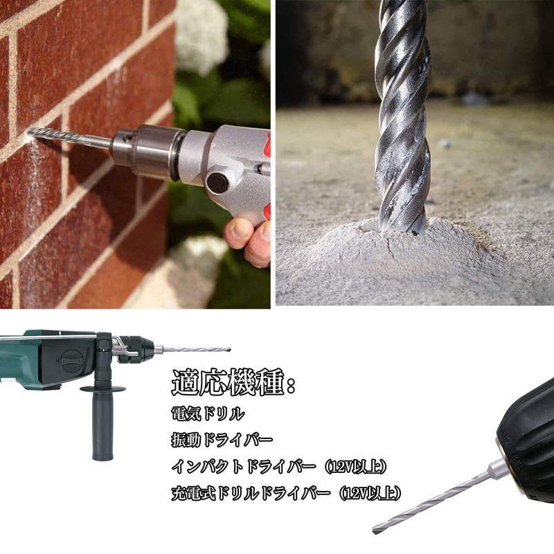 - Compatible models: The universal hexagonal shaft (0.25 inch (6.35 mm) finish allows it to be attached to an impact driver with a single touch, making it easy to use as a concrete drill. Compatible tools: Electric drill; Impact driver (12 V or above); Rechargeable drill driver (12 V or above); Vibration driver