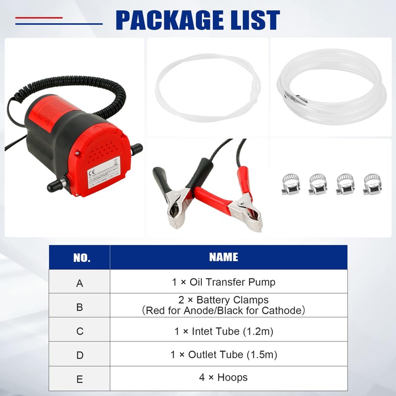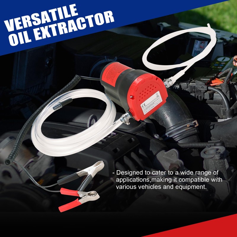 - Comprehensive Package: Included in the package are essential components for your convenience. You will find 1 pump, 2 outlet hoses, 2 inlet hoses, 4 hose clamps, and 2 battery clamps. This all-inclusive kit ensures you have everything needed for a seamless oil extraction experience.