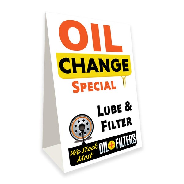 This product listing is for our 2 x 3 foot Oil Change Special Economy A-Frame Sign. Available in TWO SIZES all of our Custom Economy A-Frame signs are printed on light-weight corrugated plastic (coroplast) making them a perfect choice for affordable indoor or outdoor signage. These sandwich-style signs are easy to set up, to take down and to store. They fold flat for easy transportation and storage. Once set up their bright colors and professional graphics really gets your message noticed. and can be used for short-term or long term signage. We offer TWO SIZES of Oil Change Special Economy A-Frame Sign Economy A-Frame (Sandwich) Style Signs that are perfect for almost any occasion: our Standard Economy A-Frame (24 inch wide by 36 inch tall), and the Smaller A-Frame (16 inch wide by 24 inch tall). This is for the larger sign. If you are looking for the 16 inch wide by 24 inch tall Oil Change Special Economy A-Frame Sign just enter 841098187521 in the search bar above. All of our Custom Economy A-Frame signs are printed on light-weight corrugated plastic (coroplast) making them a perfect choice for affordable indoor or outdoor signage. These signs are easy to set up, to take down and to store. They fold flat for easy transportation and storage. Once set up their bright colors and professional graphics really gets your message noticed. Because of the sign's light weight, you will need to weigh it down with something, like a rock, a brick, or our sandbag, when using it outdoors.