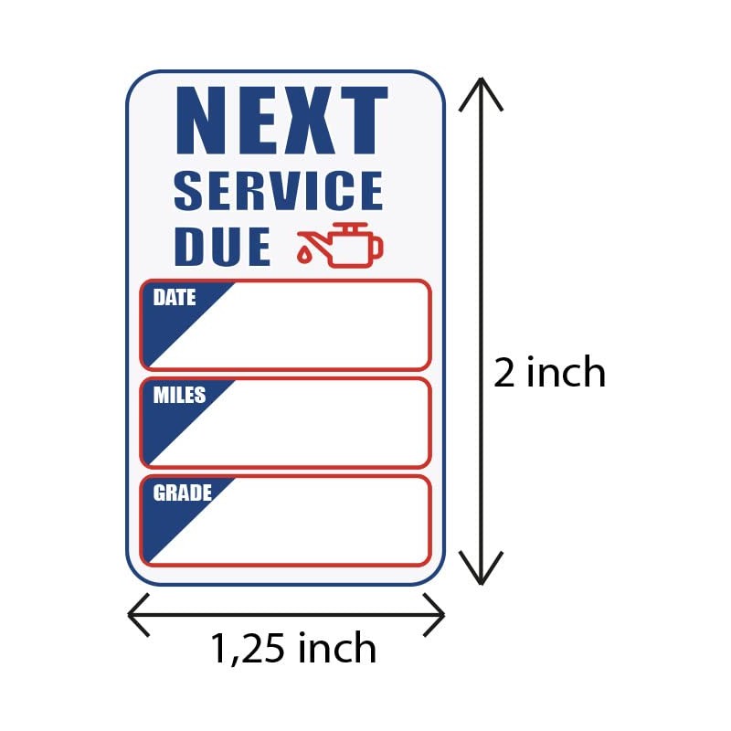 - PREMIUM QUALITY: With noticeable size and colors 2" x 1,25" windshield stickers are designed for vehicle windows. High quality oil change sticker with low tact adhesive that peels&sticks with no residue.