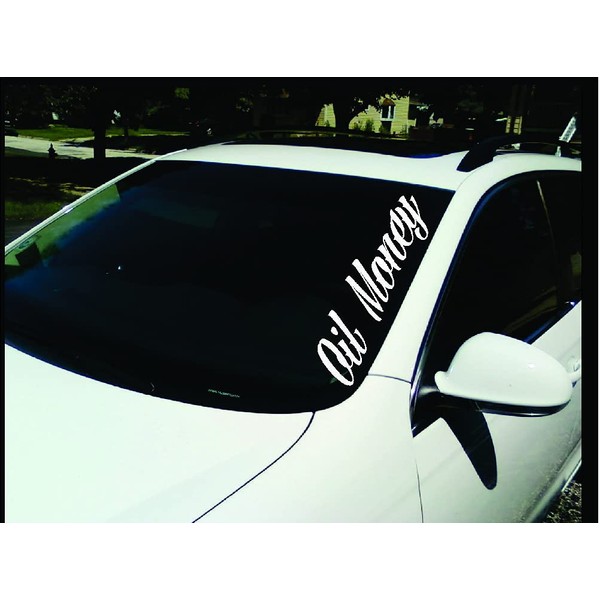 Oil Money windshield banner Decal Size 24" x 5" Please message us with your color choice from color chart below! Decal will ship in WHITE if no color is picked! Also to buyers, Please update your address before buying! For Custom Decals, Stickers & Different Sizes , please message us! Stickers and Decals are: * Made From High Quality Vinyl * High-gloss, intermediate-performance specially optimized PVC film * no shrinkage * Temperature Resistance: -40°F to +176°F * Waterproof * 5 - 7 Year Outdoor Lifespan