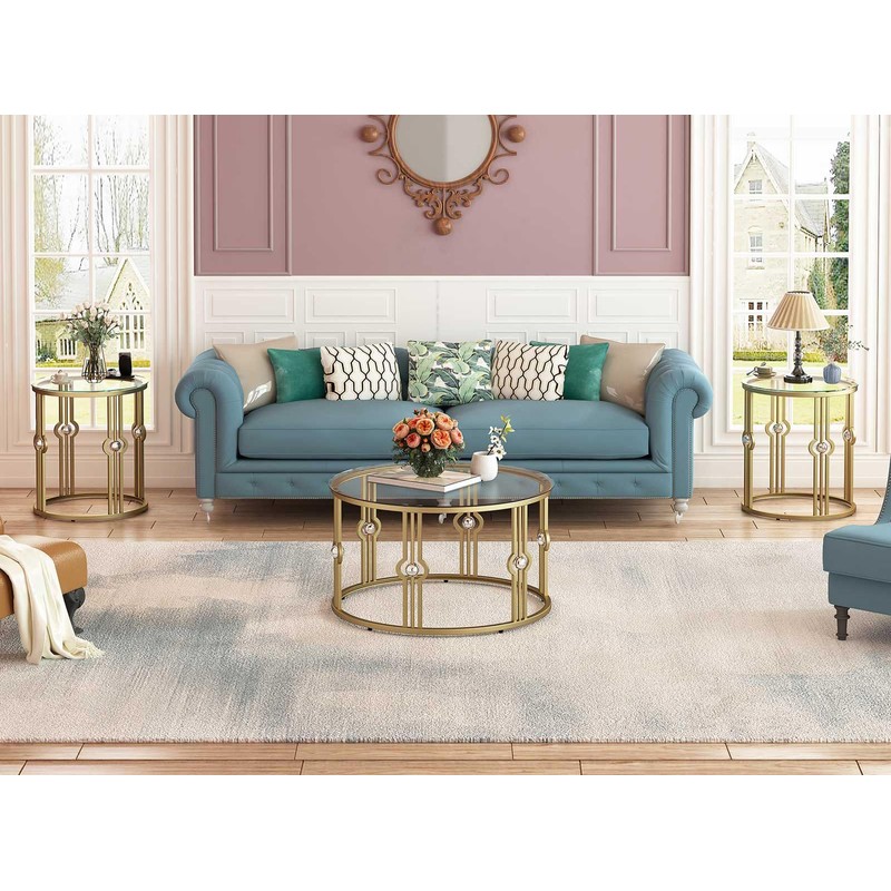 - Sturdy & Durable: The tabletop of the living room coffee table is made of 6MM tempered glass, and the frame is made of golden metal material which is both sturdy and durable. The circular tabletop design provides safety during use. In addition, the adjustable feet pads can effectively prevent the floor from being scratched