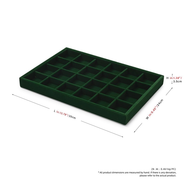 Oirlv Jahrgang Grün Samt 24 Grids Schmucktablett für Uhren,Armbändern, Armreifen,Schmuck,Ringe,Ohrringe