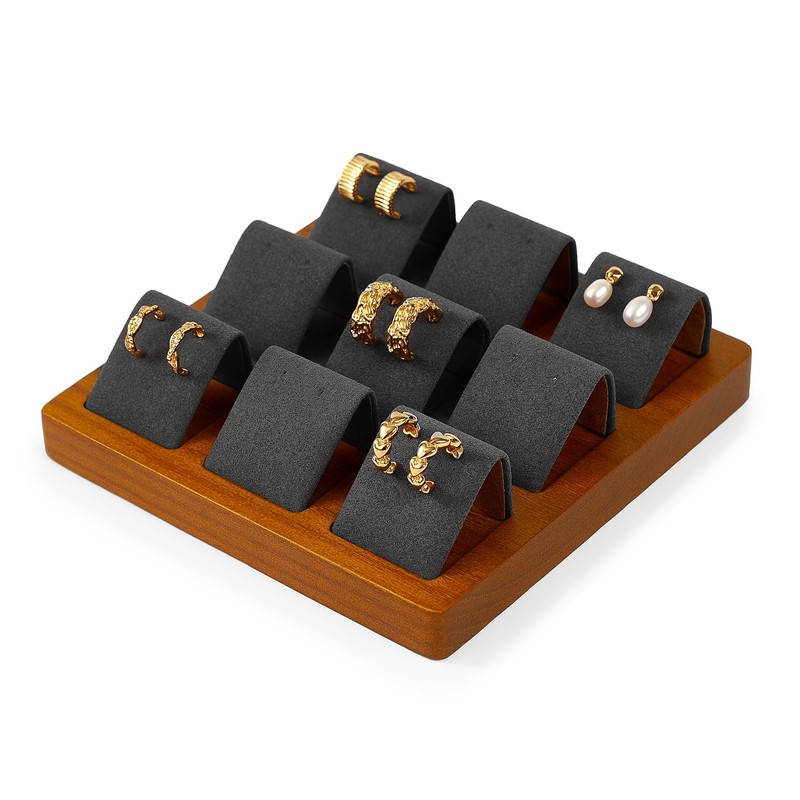 Oirlv Solid Wood 9 Location Earring Stand Jewellery Display Stand Holder Microfibre Surface (Grey)