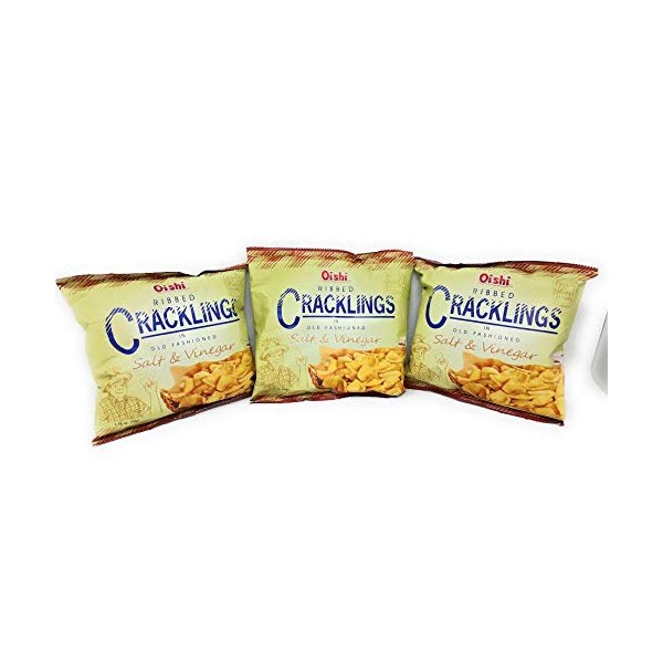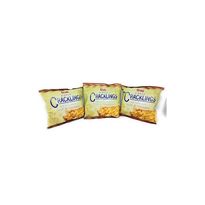 Oishi Ribbed Crackling in Old Fashioned, Salt & Vinegar Flavored, Net Wt 1.76oz (50g) 3 Pack